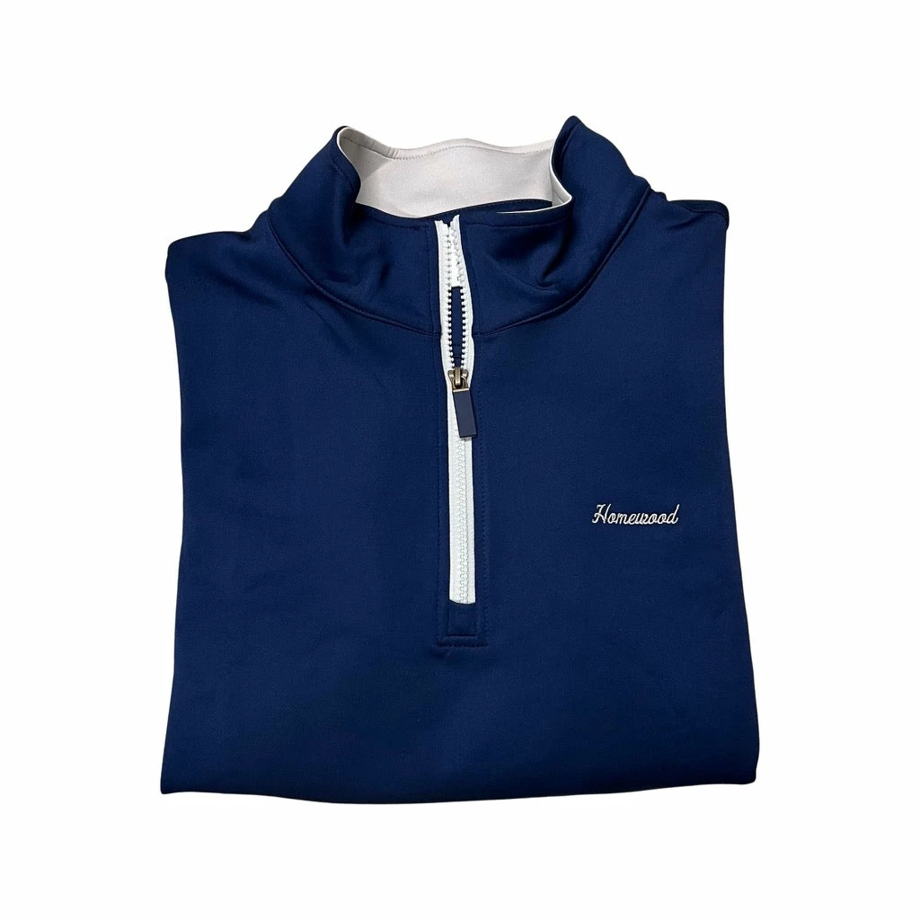 The Solid Medieval Dogwood quarter zip pullover is inspired by our unique island lifestyle and defined by the simplicity and genius of golf cart only mobility. Our performance quarter zip is soft with stretch for comfort and a true to size fitting. It can be worn on the golf course, on the water, or just when you need to warm up. Embody the Bald Head Blues island lifestyle in the Solid Medieval Dogwood quarter zip pullover and keep in mind it fits perfectly over one of our performance polo shirts. Pair with a performance hat to complete the look!
